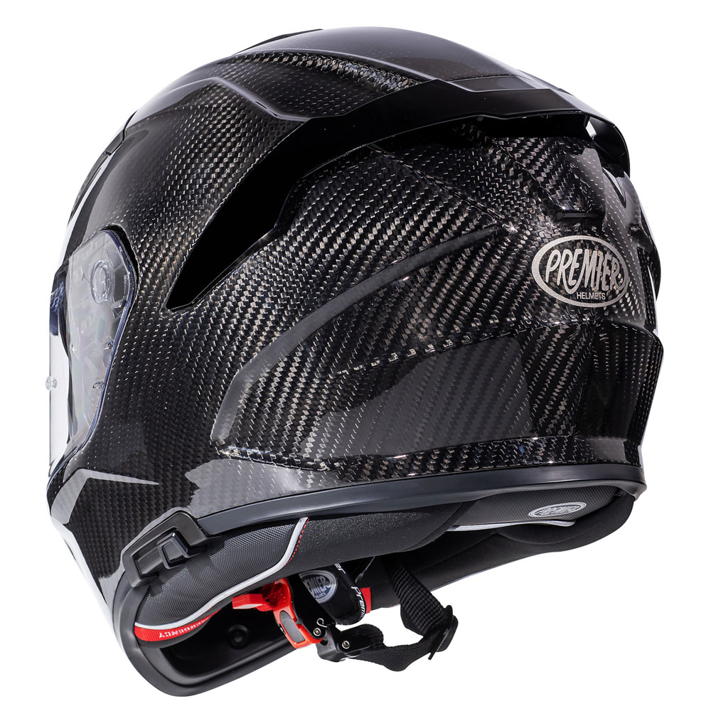 Devil è la grande novità Premier per il 2020: si tratta di un casco integrale per uso turistico, quindi pensato e progettato per le lunghe distanze, ma che si ispira nelle forme al mondo della pista. Ne nasce un prodotto adatto a chi desidera un casco adatto alle lunghe distanze senza rinunciare al design aerodinamico. In questo modello Premier ha voluto concentrare tutto il meglio delle conoscenze del suo reparto, sempre alla ricerca di soluzioni innovative e pratiche per soddisfare le necessità anche dei gusti più esigenti. Un team dedicato esclusivamente a questo progetto ha ideato Devil completamente ex novo, ponendo l’attenzione fin nei più piccoli dettagli: dall’aspetto della sicurezza alla sua grande silenziosità, che lo rendono un elemento di spicco della nuova collezione. Tutto il progetto Devil, dal prototipo al design alle grafiche sono un’esclusiva Premier. Devil nasce come casco adatto ai grandi viaggi, e ogni suo particolare rispecchia la volontà di rendere il viaggio un’esperienza unica di guida in completo comfort. Grazie ai continui studi del reparto, la visiera è stata ampliata di ben l’11% in modo da offrire al motociclista un campo visivo maggiore rispetto ai precedenti modelli Premier. In più, oltre alla visiera in policarbonato antigraffio, è dotato di un visierino dark interno a scomparsa che consente una guida ottimale in ogni condizione meteo e di luce, e che viene azionato da una comoda leva posta sulla parte sinistra del casco. Per ovviare al problema dell’appannamento in caso di sbalzi termici viene dotato di lente Pinlock® inclusa nel prezzo, che può essere montata comodamente senza l’ausilio di attrezzatura. Ulteriore particolare studiato appositamente è il blocco di chiusura della visiera, posizionato sulla mentoniera: solitamente presente nei caschi di tipo racing, Premier ha voluto dotare Devil di questo speciale meccanismo che con un semplice click rende il casco maggiormente silenzioso e sicuro anche alle alte velocità. Un occhio di riguardo è stato posto anche al sistema di ventilazione, che si compone di tre elementi: un’ampia presa d’aria posta nella parte frontale e una sulla mentoniera consentono un’aerazione ottimale sia nella parte superiore che inferiore, mentre l’estrattore nella parte posteriore del casco permette una perfetta fuoriuscita dell’aria calda, in modo da lasciare l’interno sempre fresco e da garantire un ricircolo ottimale. Grazie all’ ”Advanced Padding System”, un kit compreso nella confezione che permette di personalizzare gli interni, la calzata risulta confortevole ai massimi livelli. Sono costituiti da materiali traspiranti e resi anallergici grazie al trattamento Sainitized, completamente sfoderabili e lavabili. Per rendere la guida ancora più comoda, le imbottiture sono state disposte in modo da ricavare uno spazio sufficiente alla guida con lenti da vista, grazie al sistema Easy Fit. Devil è dotato di chiusura micrometrica, che ne consente uno sgancio rapido come ogni casco touring che si rispetti, ed è predisposto all’installazione dei sistemi di comunicazione Bluetooth. La calotta interna si compone di materiale in EPS, un particolare polistirolo pressato che viene allocato a densità differenziata a più zone, e che ne consente un’ottima risposta in caso di urto disperdendo l’energia liberata in modo uniforme. La calotta esterna viene prodotta mediante l’utilizzo di due misure di stampo, in modo da rendere il prodotto più performante a seconda della taglia richiesta: la calotta piccola copre le taglie che vanno dalla XS alla M, mentre la calotta di dimensioni maggiori copre le taglie che vanno dalla M+ alla XXL. Viene realizzata mediante l’utilizzo di fibra aramidica in carbonio combinata a resina epossidica di ultima generazione, così da rendere la calotta molto leggera ma allo stesso tempo elastica ed estremamente resistente agli urti. Devil è disponibile in due varianti in carbonio, sia lucido che opaco, e in tre grafiche che si diversificano nei colori, per un totale di tredici varianti cromatiche. La grafica Gran Turismo (variante GT) si caratterizza da un blocco colore circondato da linee che coprono la calotta. Il design che ripercorre nelle forme l’eleganza e la purezza dei colori creano un casco che non passerà inosservato nella nuova collezione Premier 2020. La grafica Predator (variante PR) è curata in ogni minimo particolare e altamente dettagliata, caratterizzata da un design aggressivo e accattivante che rende il casco estremamente sportivo. Un’attenta scelta dei colori rendono Predator un pezzo unico nel suo genere nella nuova collezione. La grafica Electro (variante EL) infine si contraddistingue per la sua originalità. L’energia è l’anima di Electro. Lo stile peculiare dato da forme appuntite e congiunte da linee sottili creano un’energia che ripercorrono tutta la calotta che unito alla perfetta aerodinamicità del casco, rendono Electro un ottimo elemento per gli appassionati dalla personalità forte e sportiva. Completano la serie Devil le eleganti varianti monocolore in bianco lucido e nero opaco. È dotato di certificato di omologazione ECE 22/05. Visiera scura compresa nel prezzo.