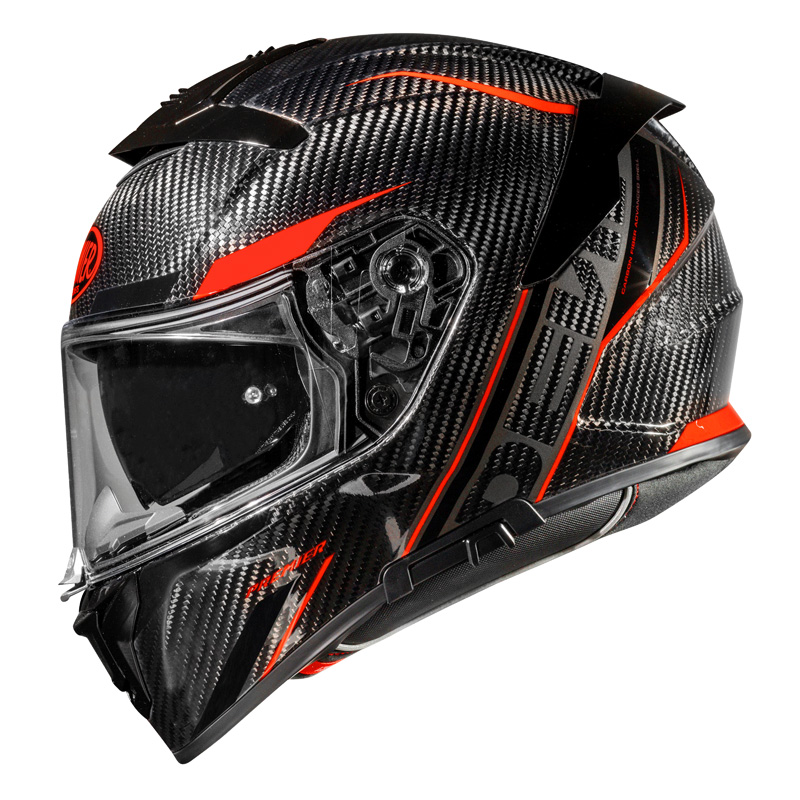 Devil è la grande novità Premier per il 2020: si tratta di un casco integrale per uso turistico, quindi pensato e progettato per le lunghe distanze, ma che si ispira nelle forme al mondo della pista. Ne nasce un prodotto adatto a chi desidera un casco adatto alle lunghe distanze senza rinunciare al design aerodinamico. In questo modello Premier ha voluto concentrare tutto il meglio delle conoscenze del suo reparto, sempre alla ricerca di soluzioni innovative e pratiche per soddisfare le necessità anche dei gusti più esigenti. Un team dedicato esclusivamente a questo progetto ha ideato Devil completamente ex novo, ponendo l’attenzione fin nei più piccoli dettagli: dall’aspetto della sicurezza alla sua grande silenziosità, che lo rendono un elemento di spicco della nuova collezione. Tutto il progetto Devil, dal prototipo al design alle grafiche sono un’esclusiva Premier. Devil nasce come casco adatto ai grandi viaggi, e ogni suo particolare rispecchia la volontà di rendere il viaggio un’esperienza unica di guida in completo comfort. Grazie ai continui studi del reparto, la visiera è stata ampliata di ben l’11% in modo da offrire al motociclista un campo visivo maggiore rispetto ai precedenti modelli Premier. In più, oltre alla visiera in policarbonato antigraffio, è dotato di un visierino dark interno a scomparsa che consente una guida ottimale in ogni condizione meteo e di luce, e che viene azionato da una comoda leva posta sulla parte sinistra del casco. Per ovviare al problema dell’appannamento in caso di sbalzi termici viene dotato di lente Pinlock® inclusa nel prezzo, che può essere montata comodamente senza l’ausilio di attrezzatura. Ulteriore particolare studiato appositamente è il blocco di chiusura della visiera, posizionato sulla mentoniera: solitamente presente nei caschi di tipo racing, Premier ha voluto dotare Devil di questo speciale meccanismo che con un semplice click rende il casco maggiormente silenzioso e sicuro anche alle alte velocità. Un occhio di riguardo è stato posto anche al sistema di ventilazione, che si compone di tre elementi: un’ampia presa d’aria posta nella parte frontale e una sulla mentoniera consentono un’aerazione ottimale sia nella parte superiore che inferiore, mentre l’estrattore nella parte posteriore del casco permette una perfetta fuoriuscita dell’aria calda, in modo da lasciare l’interno sempre fresco e da garantire un ricircolo ottimale. Grazie all’ ”Advanced Padding System”, un kit compreso nella confezione che permette di personalizzare gli interni, la calzata risulta confortevole ai massimi livelli. Sono costituiti da materiali traspiranti e resi anallergici grazie al trattamento Sainitized, completamente sfoderabili e lavabili. Per rendere la guida ancora più comoda, le imbottiture sono state disposte in modo da ricavare uno spazio sufficiente alla guida con lenti da vista, grazie al sistema Easy Fit. Devil è dotato di chiusura micrometrica, che ne consente uno sgancio rapido come ogni casco touring che si rispetti, ed è predisposto all’installazione dei sistemi di comunicazione Bluetooth. La calotta interna si compone di materiale in EPS, un particolare polistirolo pressato che viene allocato a densità differenziata a più zone, e che ne consente un’ottima risposta in caso di urto disperdendo l’energia liberata in modo uniforme. La calotta esterna viene prodotta mediante l’utilizzo di due misure di stampo, in modo da rendere il prodotto più performante a seconda della taglia richiesta: la calotta piccola copre le taglie che vanno dalla XS alla M, mentre la calotta di dimensioni maggiori copre le taglie che vanno dalla M+ alla XXL. Viene realizzata mediante l’utilizzo di fibra aramidica in carbonio combinata a resina epossidica di ultima generazione, così da rendere la calotta molto leggera ma allo stesso tempo elastica ed estremamente resistente agli urti. Devil è disponibile in due varianti in carbonio, sia lucido che opaco, e in tre grafiche che si diversificano nei colori, per un totale di tredici varianti cromatiche. La grafica Gran Turismo (variante GT) si caratterizza da un blocco colore circondato da linee che coprono la calotta. Il design che ripercorre nelle forme l’eleganza e la purezza dei colori creano un casco che non passerà inosservato nella nuova collezione Premier 2020. La grafica Predator (variante PR) è curata in ogni minimo particolare e altamente dettagliata, caratterizzata da un design aggressivo e accattivante che rende il casco estremamente sportivo. Un’attenta scelta dei colori rendono Predator un pezzo unico nel suo genere nella nuova collezione. La grafica Electro (variante EL) infine si contraddistingue per la sua originalità. L’energia è l’anima di Electro. Lo stile peculiare dato da forme appuntite e congiunte da linee sottili creano un’energia che ripercorrono tutta la calotta che unito alla perfetta aerodinamicità del casco, rendono Electro un ottimo elemento per gli appassionati dalla personalità forte e sportiva. Completano la serie Devil le eleganti varianti monocolore in bianco lucido e nero opaco. È dotato di certificato di omologazione ECE 22/06. Visiera scura compresa nel prezzo.
