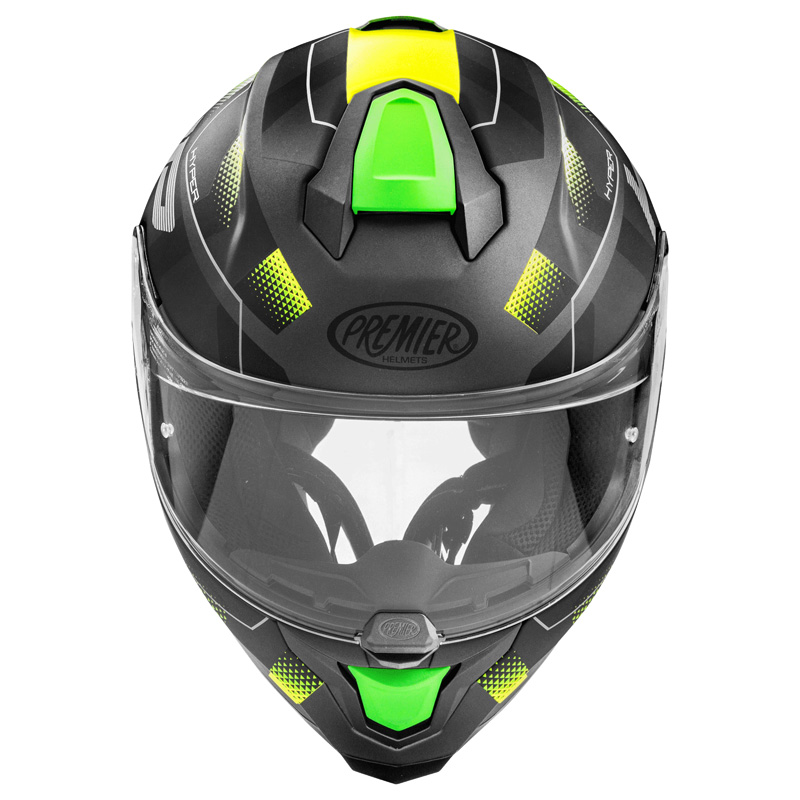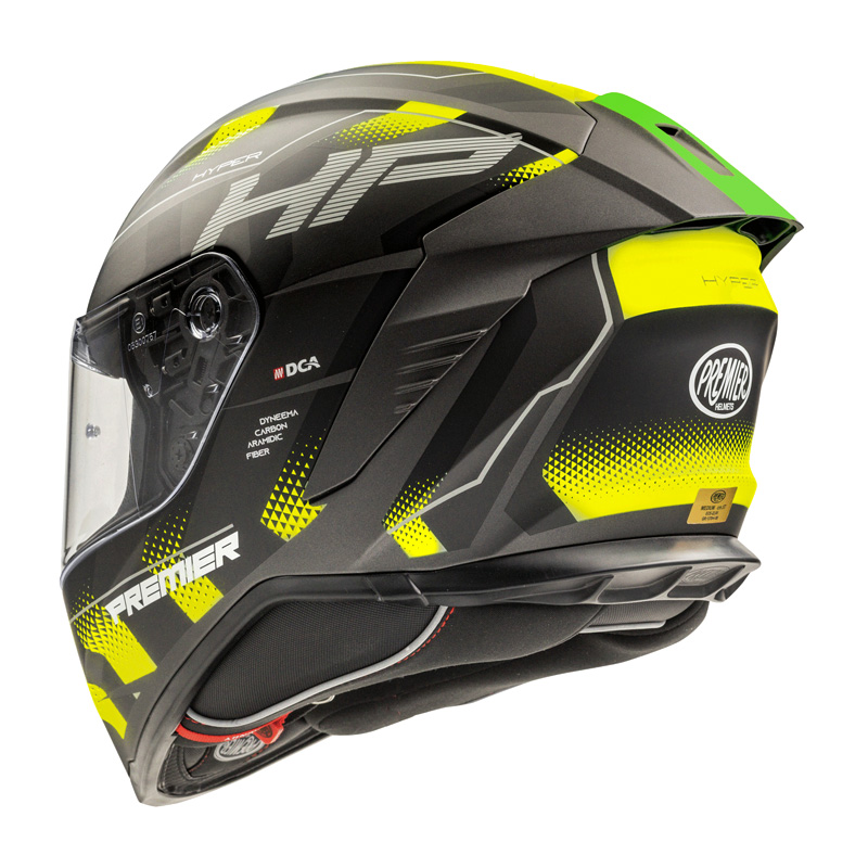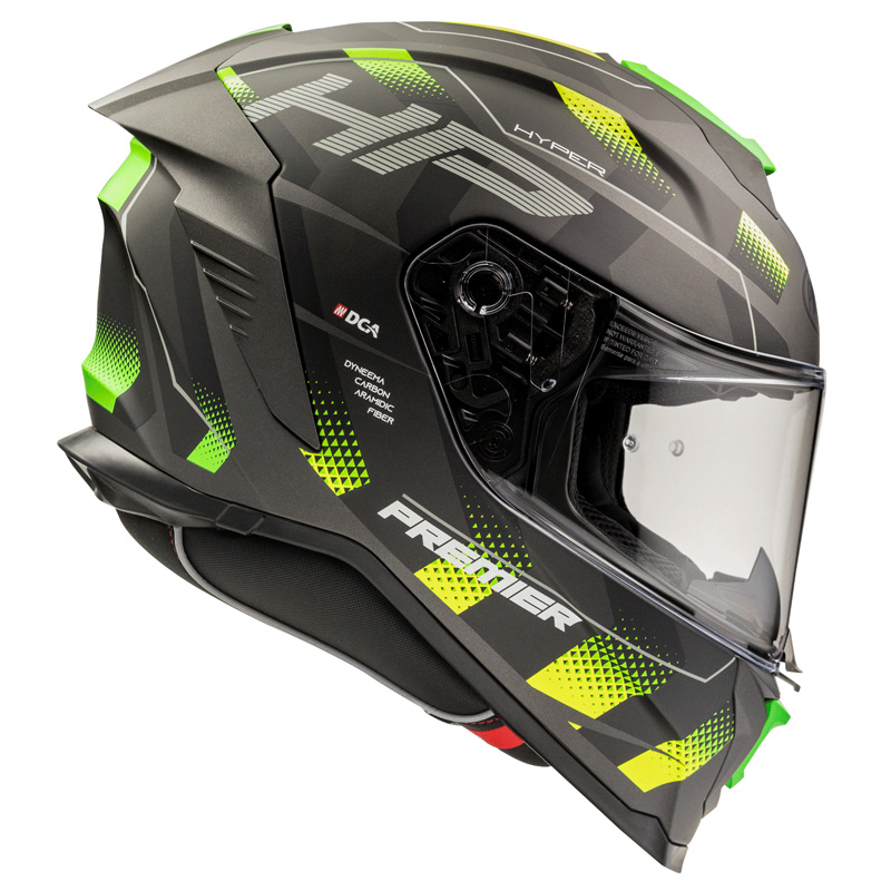 Hyper, grande novità 2020, è l’integrale racing top di gamma proposto da Premier. Per questo modello dal design aggressivo e dalle caratteristiche tecniche eccellenti l’azienda ha messo in campo tutta la sua pluridecennale esperienza nel campo racing. Hyper è un casco sportivo ma non estremo. Lo potremmo usare in gara, ma anche in viaggio grazie agli interni confortevoli e ad un adeguato sistema di ventilazione che non fa rimpiangere l’aria condizionata. Visiera scura compresa nel prezzo.