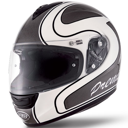 La linea Premier classica propone caschi dal design retrò, realizzati ispirandosi alle emozioni che ieri come oggi regala a tutti gli appassionati il famoso Autodromo Nazionale di Monza, concepito nel 1922 e divenuto uno dei più veloci e folli a livello mondiale. N° calotte: 2. Prese aria: 2. Materiale: fibre tri-composite. Fibbia: doppio anello. Peso: 1320 gr +- 50 gr. Visiera, visierino interno scuro e pinlock di serie.